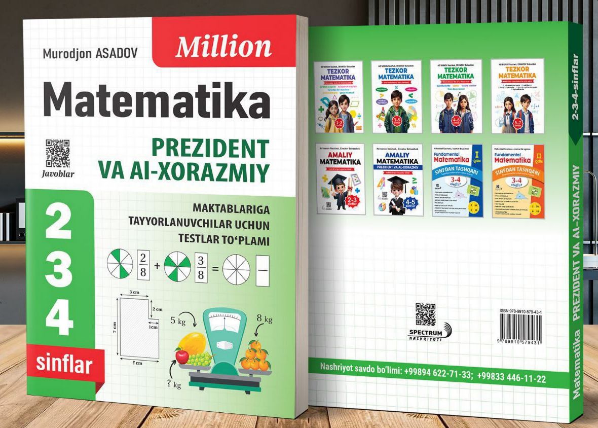 Matematika fanidan 2-3-4-sinf oʻquvchilar uchun ajoyib testlar toʻplami. Toʻplamdagi barcha misol va masalalar Prezident maktabi va Al Xorazmiy makta..